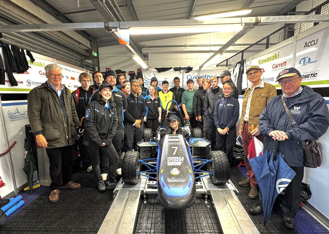 For 2025 The Bugatti Trust sponsored 7 Formula Student FS Teams featuring IC, hybrid and EV powertrains. FS UK at Silverstone allowed to catch up with the teams and make plans for the next season. The photo shows the Trust’s team with Coventry University’s Phoenix Racing who went on to win three awards including the sprint event!